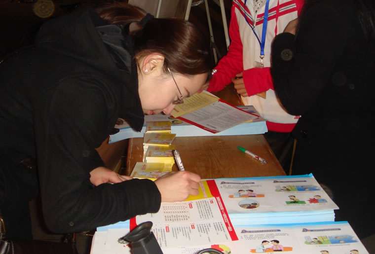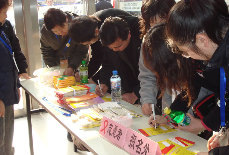 宣武区志愿者在填写报名表