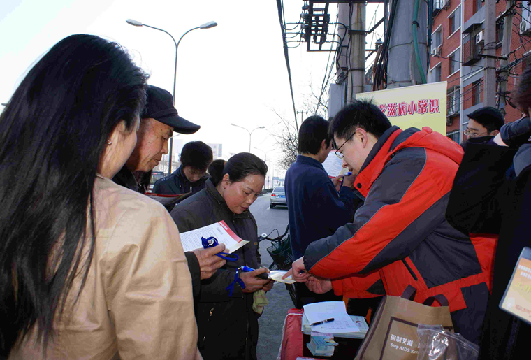 昌平 工作人员在给行人讲解艾滋病知识