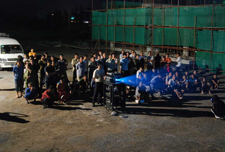 海淀 防艾宣传--工地放电影200人观看