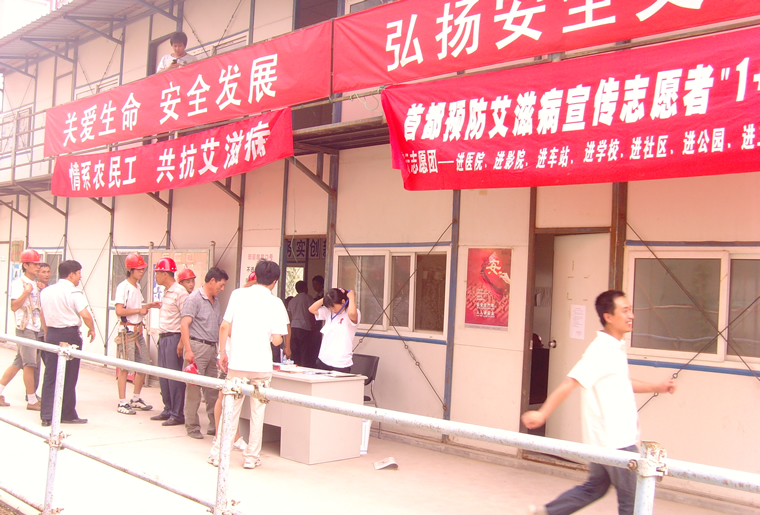 海淀 防艾宣传--工地放电影200人观看