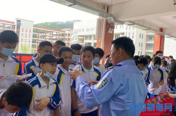 广东肇庆:封开县禁毒宣传进校园活动现场,宣传民警和社工们参照毒品模型为在校师生们介绍毒品的有关知识及有关禁毒的法律法规,以生动具体…
