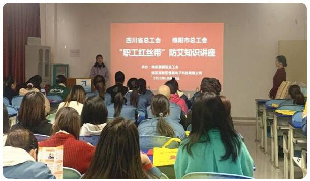 为提高广大职工的艾滋病防治知识水平,引导职工树立健康意识,养成良好的行为和生活方式,10月25日,由四川省总工会、绵阳市总工会主办,高新区总工会承办的“职工红丝带”防艾知识讲座在绵阳高新区恒奥电子科技有限公司举行。共有50余名职工参加了…