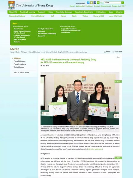 香港大学成功研发预防和清除艾滋病病毒新药物