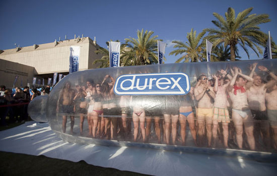 以色列大学生在巨型安全套内活动宣传防治艾滋病