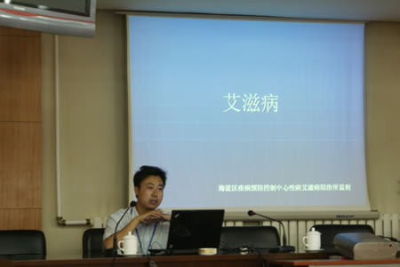 2010年7月9日下午,海淀区疾病预防控制中心性病艾滋病防治科的工作人员,来到了中铁集团五棵松饭店,与海淀团区委携手一起举办了“关爱进京务工,共建文明和谐海淀”的活动。