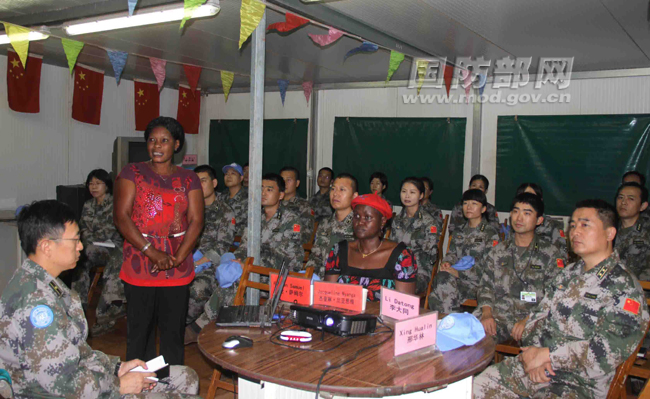 医疗队队长李大同在授课结束后,对两位女士的精彩授课表达了感谢,并表示:维和医疗队将在下一步工作中严格按照联合国的要求,保护好妇女儿童的权益,尊重艾滋病患者隐私,关爱生命,关爱健康,切实履行好维护世界和平的神圣使命,为南苏丹的和平和地区稳定贡献自己的力量,尽好职责和义务。