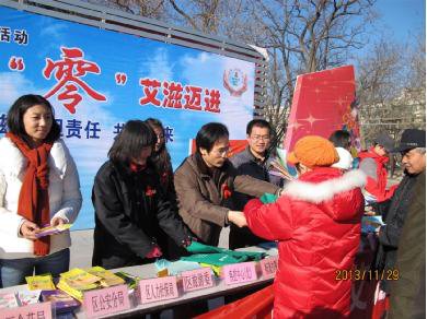 2013年12月1日,是第26个“世界艾滋病日”,主题是“行动起来,向‘零’艾滋迈进”,副标题是“共抗艾滋,共担责任,共享未来”。2013年11月29日上午,由东城区防艾委主办,区疾控中心、疾控南部分中心承办,东城区在地坛公园北门广场举办“世界艾滋病日”主会场宣传活动,区卫生局副局长刘清华以及区发改委、区工商分局、区计生委、团区委、区红十字会及街道办事处等区防艾委成员单位的领导参加了活动。