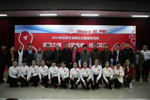 区防艾委成员单位领导和参加活动的企业、学生、医务志愿者代表合影