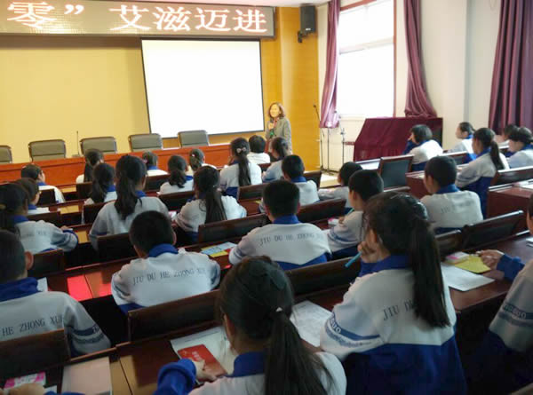 为了提高辖区九渡河中学学生的艾滋病防控知识水平,2016年5月23日,九渡河镇社区卫生服务中心工作人员在九渡河中学多媒体教室,通过健康教育大课堂的形式对全校初中一年级的学生进行了艾滋病防控知识的讲座。工作人员讲解了艾滋病的定义、传染源、传播途径以及如何预防等知识,并现场进行了有奖知识问答和艾滋病知识问卷的调查。学生能够积极参与互动,认真填写问卷,艾滋病知识知晓率调查结果100%。