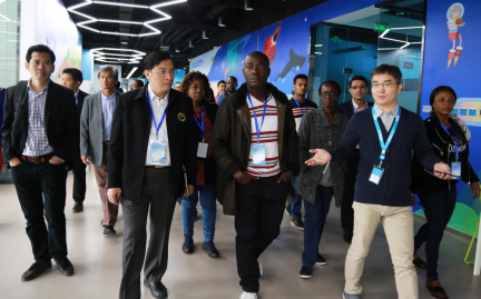 上午9时,19名非洲、东南亚国家防艾代表来到Blue City,在公司副总裁、首席医学官米国栋博士的带领下参观Blued办公区。