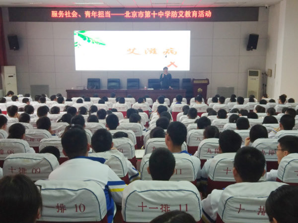 2019年3月19日下午,丰台区疾病预防控制中心性病艾滋病预防科联手共青团北京市丰台区委员会,在丰台十中举办“服务社会 青年担当”防艾主题教育讲座。本次讲座邀请到了北京景山学校健康教育教师、北京市级骨干教师、教育部学校预防艾滋病健康教育专家组成员、中国计生协青春健康专家组成员,中国青爱工程专家委员会专家刘莹老师来为丰台十中高一年级全体220余名同学授课。