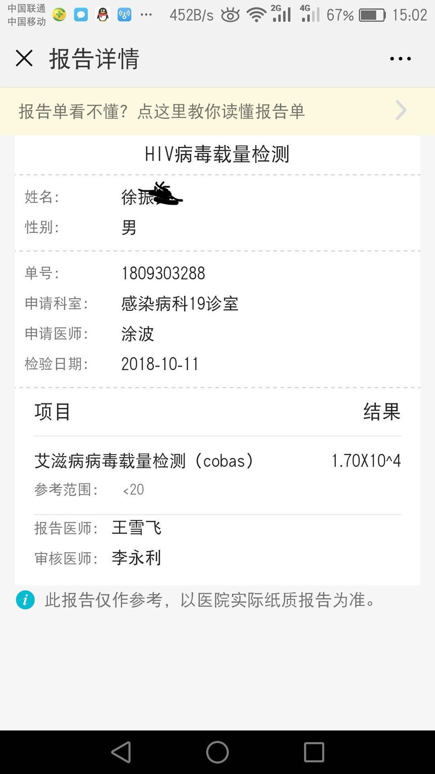 这不是个个例:一位中国重庆的艾滋病患者在北京中美联合医院服用(艾滋1号)六个月后艾滋病病毒载量转阴,现己随访患者五年没有复发。