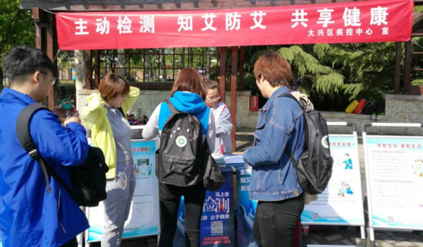 为加强本区居民对性病、艾滋病的认识,正确掌握预防性病艾滋病的知识,树立主动检测观念,倡导健康文明的生活方式,2019年4月26日,大兴区疾控中心结合“万步有约”健走活动启动仪式,在大兴区埝坛公园开展了以“主动检测 知艾防艾 共享健康”为主题的性病艾滋病知识宣传活动。