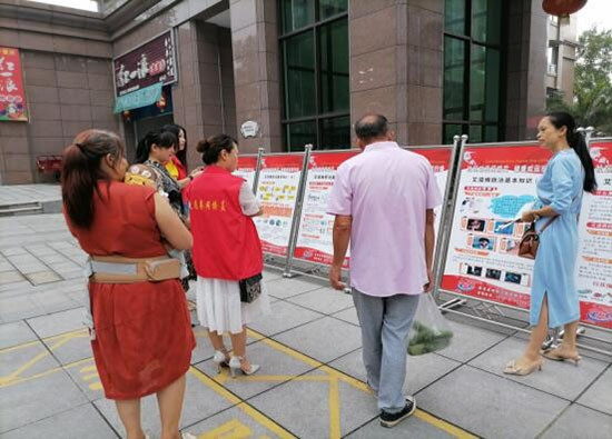 现场,社区工作人员将艾滋病展板放在显眼的位置,并向居民发放了艾滋病宣传资料200余份,让过往的行人能够及时了解及艾滋病的传染途径和相关的预防知识。