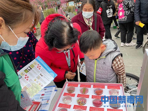 玉林街道以南虹社区广场举行新春游园活动为契机,开展禁毒宣传活动。禁毒社工通过组织有奖问答等方式,向群众们讲解毒品的种类、危害及禁毒相关法律法规,教育引导群众要珍爱生命,远离毒品。