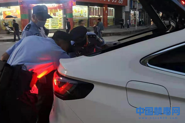 图为禁毒民警检查过往车辆。中国禁毒网发
