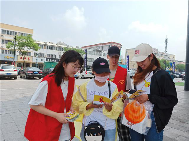 积极动员,营造防艾宣传氛围. 为扎实开展专项社会实践活动,经贸管理学院红十字会提前行动,认真部署,在全院范围内掀起防艾宣传的热浪。5月初,团队在完善活动方案的基础上,面向全校招募志愿者,得到了广大青年学生的热烈支持。红十字会对入围志愿者进行了长达一个月的专项培训,为后期的活动开展奠定了坚实基础。6月20日,经贸管理学院开展了2022年“因为艾,所以爱”暑期防艾社会实践的启动仪式,学院党总支书记陈晓敏做动员讲话,为实践组全体成员加油鼓劲。项目负责人,学院分团委副书记徐晓楠在表态发言中强调,大学生服务社会,是责任担当,义无反顾。