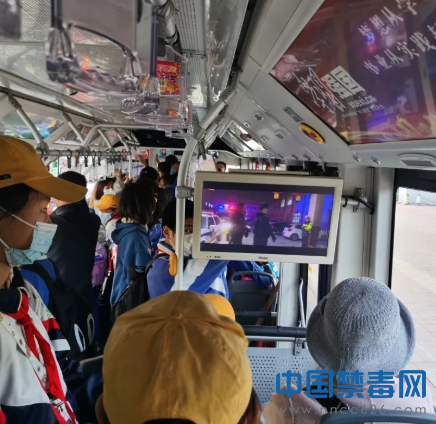 图为公交车播放禁毒视频。中国禁毒网发