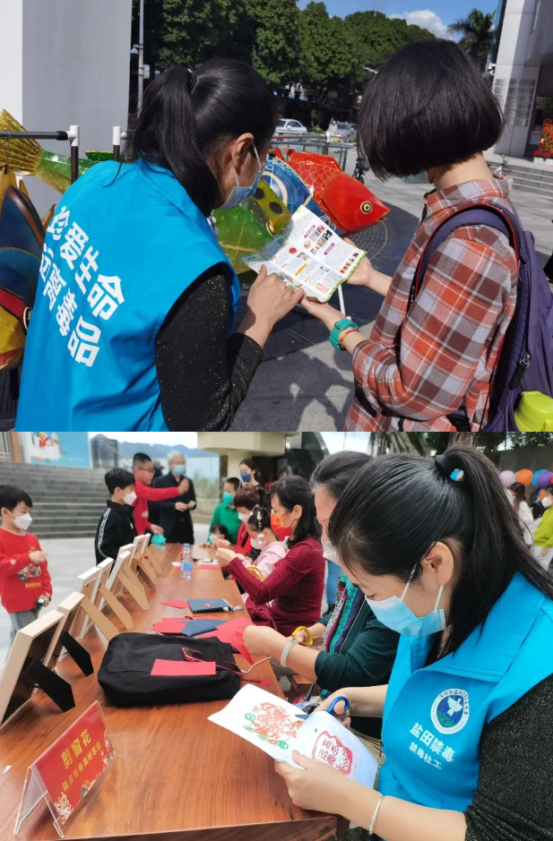 春节期间,广东省深圳市盐田区禁毒办联合中英街管理局及禁毒社工借助历史博物馆广场举办春节集市的机会,开展禁毒宣传活动。活动期间,禁毒社工利用禁毒宣传折页向群众讲解毒品知识,剪纸老师、禁毒社工和群众一起剪纸庆新春,并将禁毒元素融入剪纸活动中,现场气氛活跃。