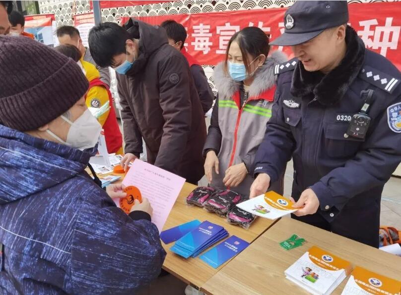 望京街道平安办联合南湖派出所、南湖西里居委会在梦秀商业广场组织开展禁种铲毒宣传活动,工作人员现场悬挂横幅、张贴海报、发放禁毒宣传手册,向参加活动的群众讲解吸食毒品带来的危害、禁毒相关法律法规等知识,并详细介绍了毒品原植物罂粟的具体特征、辨识方法以及非法种植须承担的法律责任,同时鼓励广大群众主动揭发和检举非法种植罂粟等涉毒违法犯罪行为,共建无毒社会。