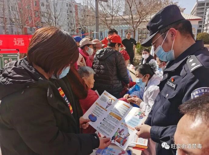 旺泉街道禁毒工作领导小组在前进花园社区广场开展禁毒宣传活动,禁毒民警和禁毒社工及社区工作人员通过拉横幅、摆放禁毒展板、发放禁毒知识手册等方式,向社区居民讲解毒品的种类、毒品的伪装、吸食毒品的危害以及如何防范毒品侵害等知识,并呼吁社区居民要以身作则,坚决抵制毒品,有效扩大了宣传教育的覆盖面,营造了浓厚的禁毒氛围。