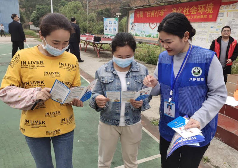 在壮族“三月三”来临之际,贺州市八步区各乡镇热情似火、各显神通,广泛开展禁毒宣传活动,禁毒专干、志愿者巧妙利用“三月三”活动间隙为广大群众送上入心入脑的禁毒知识。
