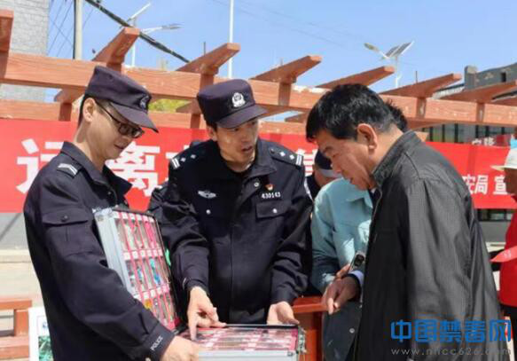 图为民警向群众展示毒品仿真模型。中国禁毒网发