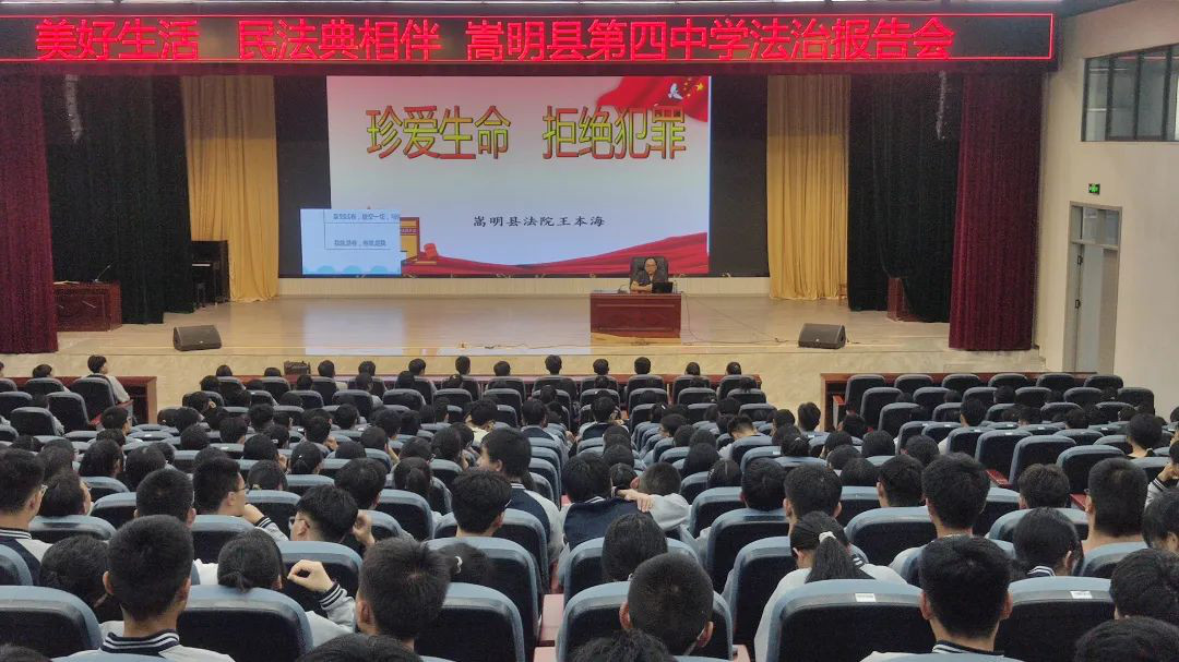 为不断加强未成年人司法保护,提高未成年人自觉守法意识和自我保护意识,从源头上减少和预防未成年人犯罪案件的发生,近日,嵩明法院立案庭走入嵩明县第四中学,开展“未爱”进网格普法教育活动,由法治副校长王本海法官为400余名学生上一堂丰富生动的普法课。
