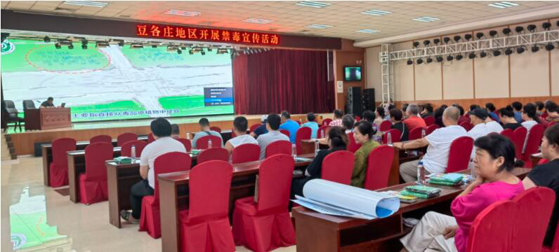 豆各庄地区平安办组织辖区居民群众开展“健康人生 绿色无毒”宣传活动,聚力营造人人关注禁毒、参与禁毒的良好氛围,让禁毒知识家喻户晓,让禁毒理念深入人心。活动中,禁毒工作人员向居民群众发放禁毒宣传资料及宣传品,并通过大屏幕向广大居民群众讲解毒品的种类及危害等知识,鼓励大家积极宣传禁毒知识,教育子女及家人不涉足不健康场所,不接受陌生人的食物,充分调动了现场居民群众参与禁毒的积极性,取得了良好的宣传效果,进一步提升了广大居民群众对毒品的警惕性,增强了“识毒、防毒、拒毒”的意识和能力。