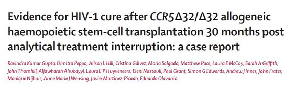 2019年3月5日,伦敦大学学院的研究人员在 Nature 期刊发表了一篇题为:HIV-1 remission following CCR5Δ32/Δ32 haematopoietic stem-cell transplantation 的论文【4】。报道了第二例被治愈的艾滋病患者——“伦敦病人”的治疗情况。