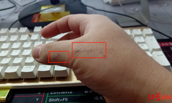 被抓伤第二天,民警手上的伤口已经结痂