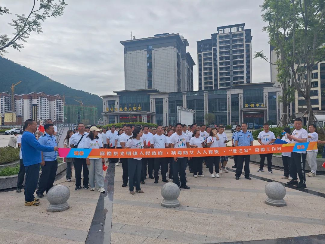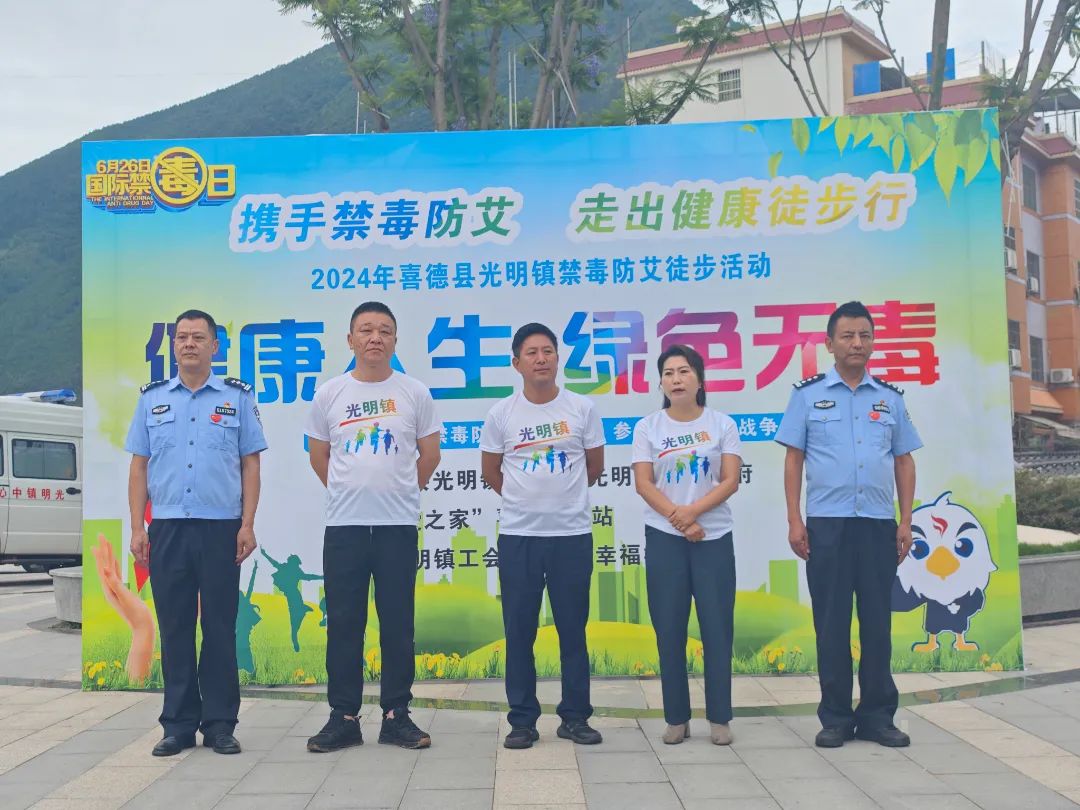 为进一步加强毒品、艾滋病预防宣传教育,增强全社会禁毒防艾、自觉抵制毒品的意识,营造全民健康浓厚氛围。2024年6月25日,“爱之家”喜德工作站以“6.26国际禁毒日”为契机,联合喜德县光明镇人民政府举办“2024年喜德县光明镇禁毒防艾徒步活动”。喜德县委副书记、光明镇党委书记包晓华,喜德县委常委、总工会主席邓阳和宣传部部长谭柏等县领导及光明镇干部职工、光明镇辖区内13个村6个社区群众代表参加徒步活动。