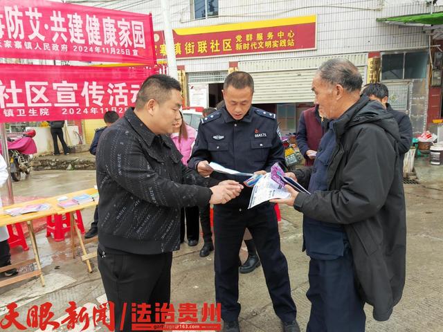 禁毒防艾进社区。思南县红十字会、思南县疾控中心联合张家寨镇派出所、卫生院在张家寨镇集市开展禁毒防艾进社区宣传教育活动,禁毒工作人员耐心的向群众宣讲毒品与艾滋病之间的密切关系,对毒品危害与艾滋病的传播途径及预防等方面进行详细科普,有效提高辖区群众对禁毒防艾工作的知晓率,营造了全民禁毒,抵制艾滋的良好氛围。