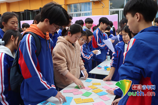 图为罗甸县第一中学学生进行零歧视标语拼贴赛。南昌大学研支团供图